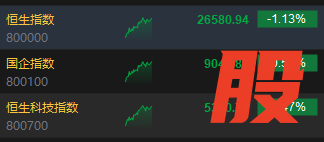 2月6日消息,港股三大指数集体下跌。截至午间收盘,恒生指数跌1.13%,报26580.94点,恒生科技指数跌0.47%,国企指数跌0.52%。盘面上,科网股跌多涨少,阿里巴巴、京东集团、网易跌超2%,美团、快手、哔哩哔哩跌超1%,小米集团涨超1%;锂电池板块逆势上涨,中创新港涨超3%;茶饮股普涨,古茗涨超4%;光伏太阳能股集体弱势,福耀玻璃跌超4%。