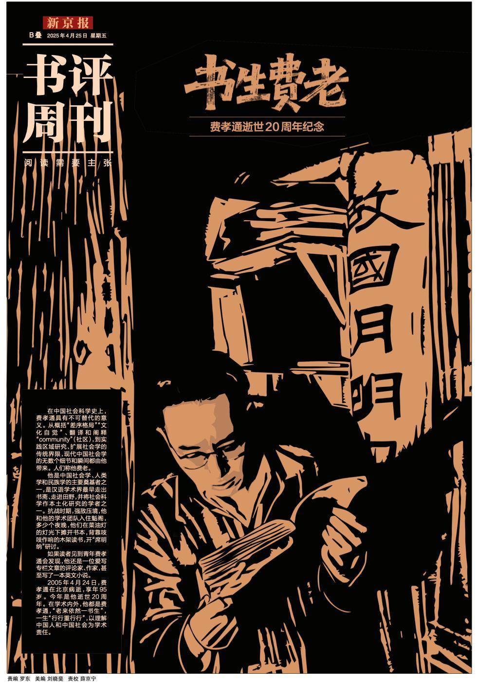 今年是费先生逝世20周年。在4月,《新京报·书评周刊》特别策划了纪念专题《书生费老》,所刊 文章包括费孝通的人生和学术、从中国社会学史的角度谈费孝通的学术遗产、从文学和社科的角度谈费孝通唯一小说《茧》,以及费孝通在魁阁时期主持的“席明纳”。