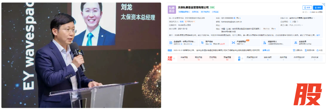 资料显示,刘龙1977年3月出生,现任太保私募基金管理有限公司(以下简称太保资本)董事长。曾任中国太保集团投资者关系部高级经理、行政人事部资深经理,太保寿险资产管理中心另类投资管理部副总经理、直接投资部总经理,太保资本筹备组成员,太保资本副总经理、总经理等职,其中太保资本2021年3月成立,刘龙既是见证者也是操盘手。